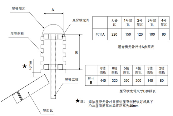 注:2、小獸安裝跟普通屋脊瓦安裝一樣。