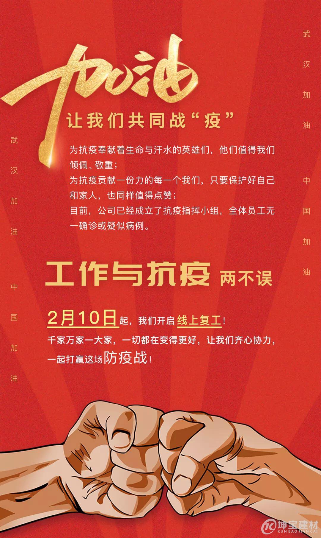 標題:團結一致 凝心聚力,坤寶樹脂瓦與您共克時艱!,地址:http://www.cnshengchuang.com/gsxinwen/710.html