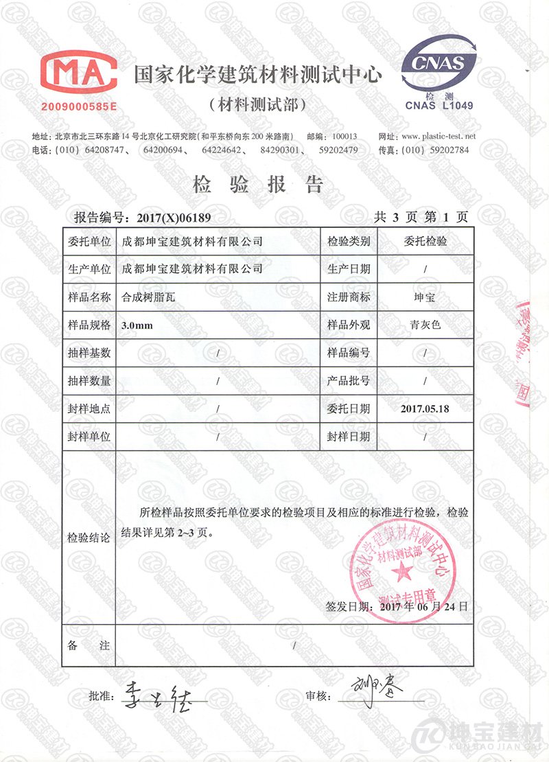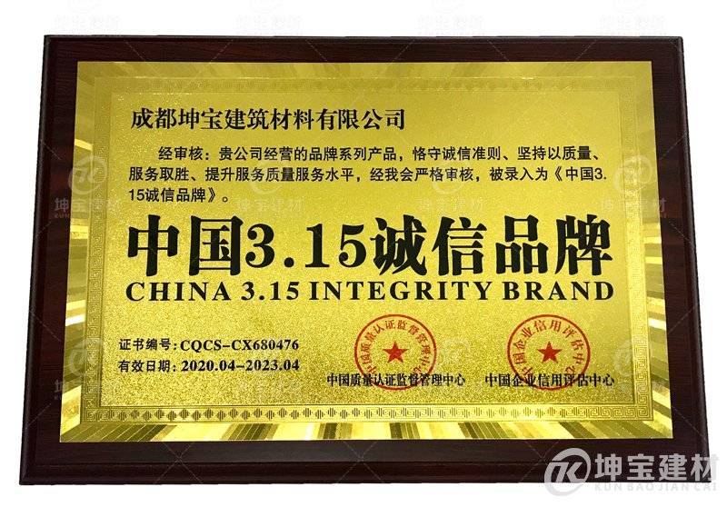 成都坤寶建筑材料有限公司一直堅(jiān)持走“綠色、低碳、環(huán)保、節(jié)能”宗旨,致力在各界政府行業(yè)協(xié)會(huì)的幫助下,成為315誠(chéng)信品牌單位,是成都坤寶建筑材料有限公司的榮耀,也是““坤寶合成樹(shù)脂瓦”品牌的見(jiàn)證。