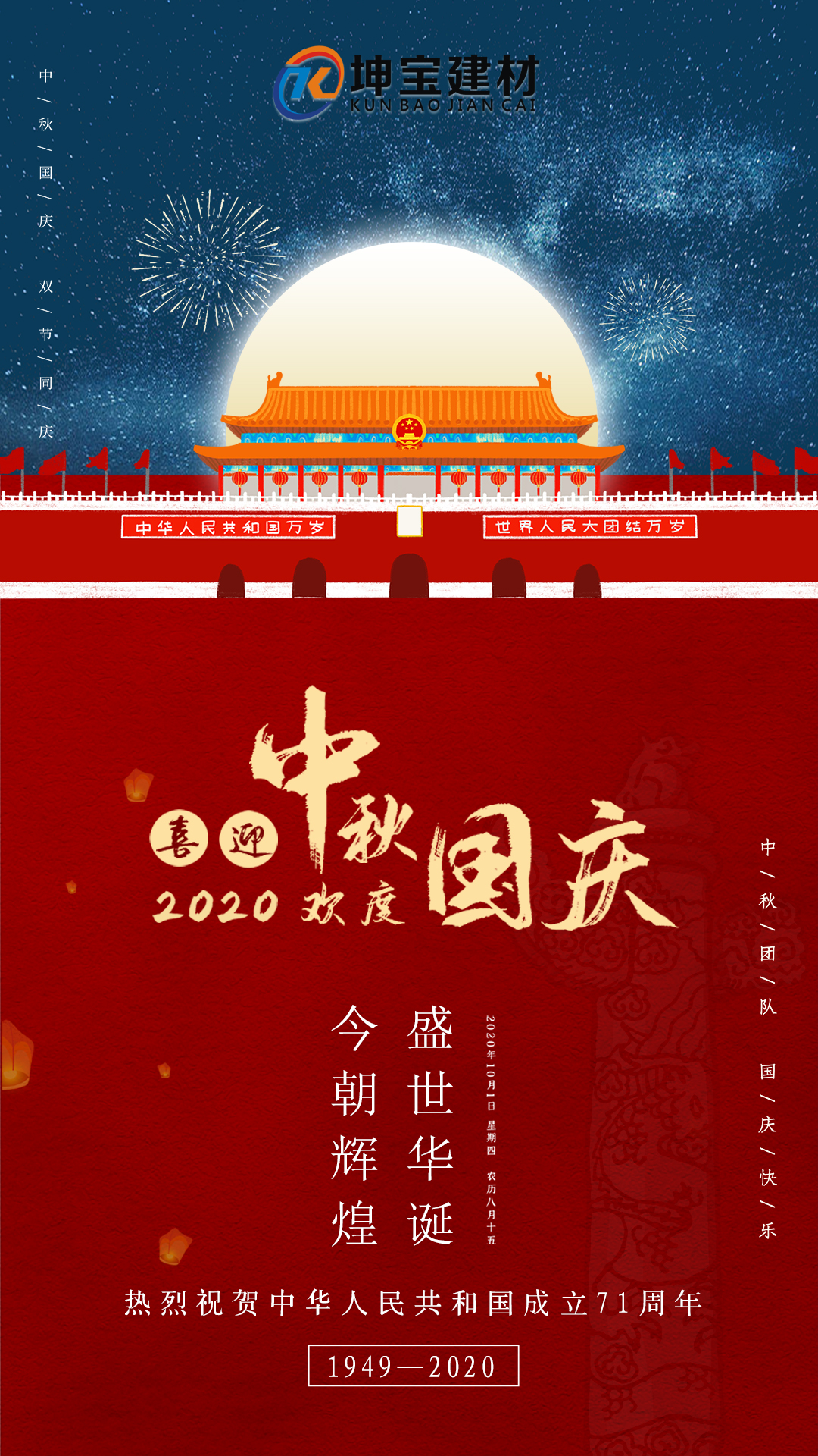 2020年國慶中秋,坤寶建材和您一起與時俱進!