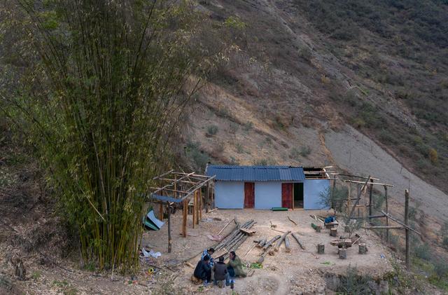 12月23日,某色蘇不惹和同伴在懸崖村修民宿(無人機照片)。