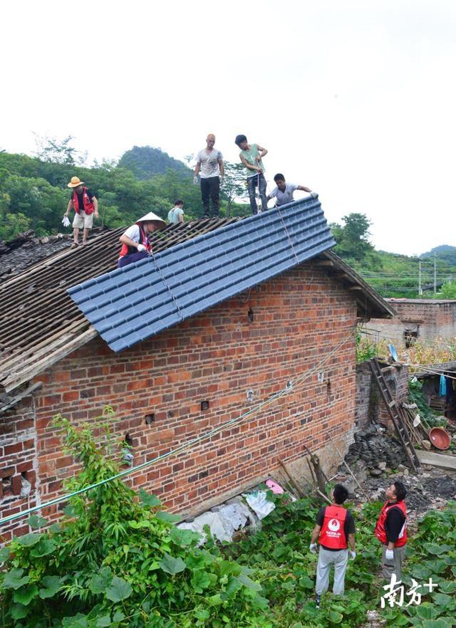 果不其然。13日上午,雷陣雨說來就來。聽著雨水落在屋頂?shù)穆曇簦贌o漏水之憂,鄧龍二妹難得露出了笑容。“多得這些阿貴、阿妹(年輕男孩、年輕女孩之意)的幫忙,我家不用再怕落雨天漏水,能睡個安穩(wěn)覺了。”她用客家話夾著瑤語說。