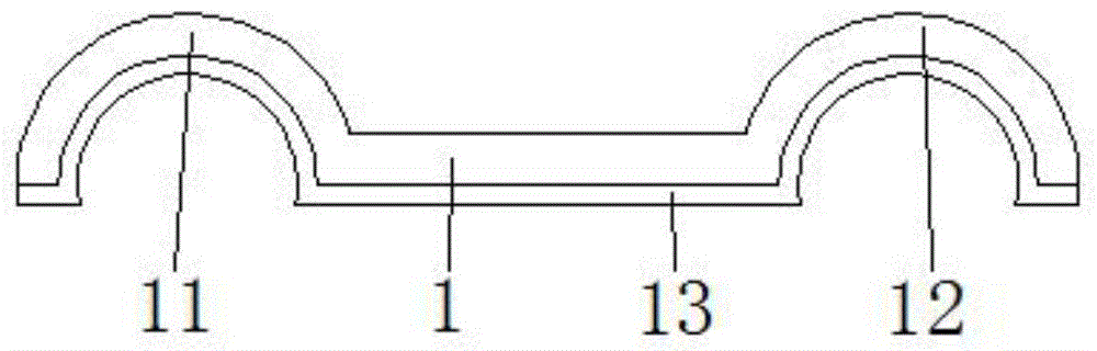 請(qǐng)參閱圖1-2,所述瓦體1、所述**弧板11和所述第二弧板12的底部均固定連接有卡板13,通過卡板13便于進(jìn)行組裝。