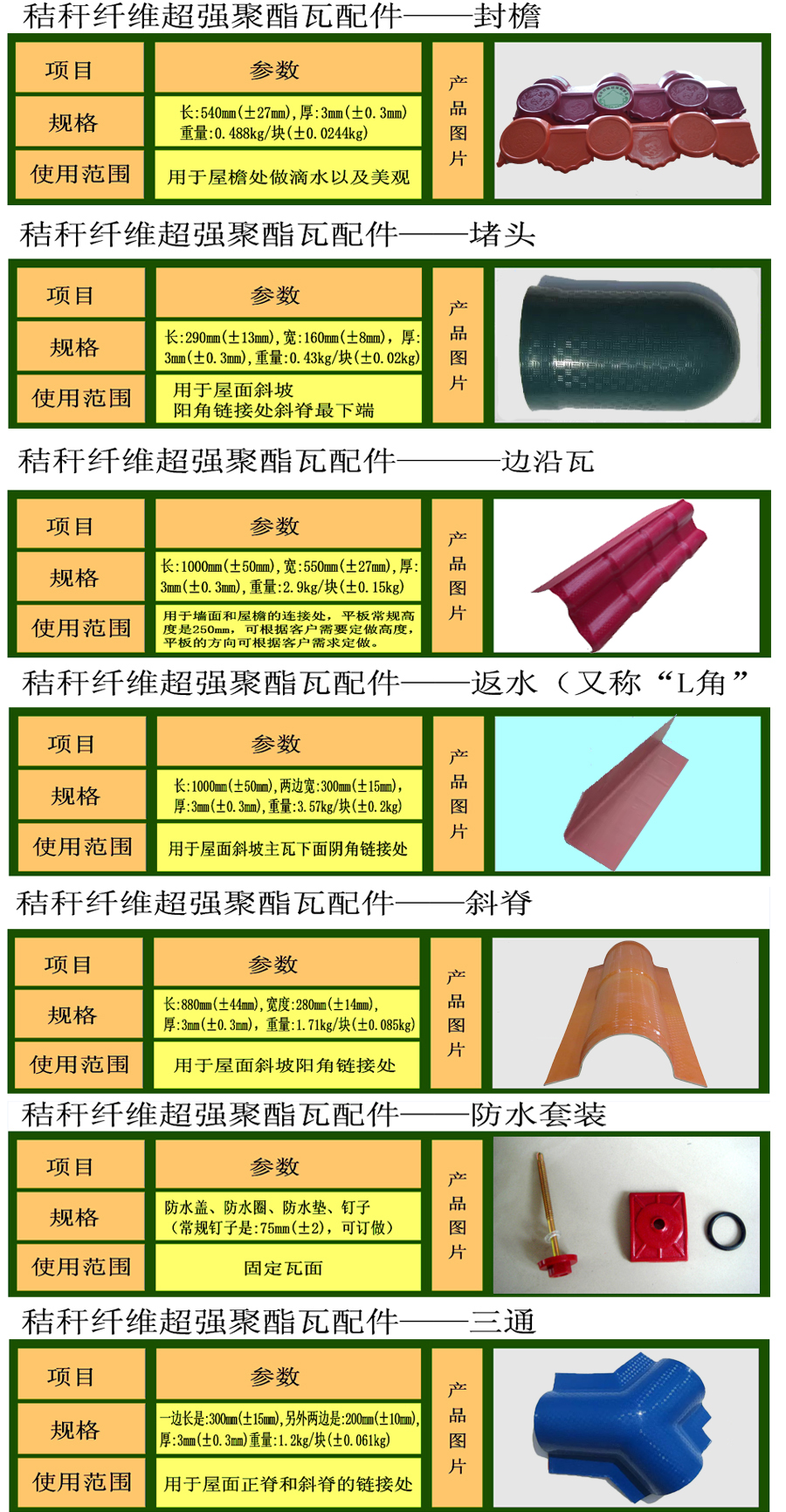 11,安裝便捷:秸稈纖維超強聚酯瓦單張面積大,鋪裝效率高,工序簡單,配套產品齊全,安裝快捷,省工省時。