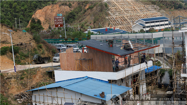 面對擋土墻生硬,部分場地存在水土流失風(fēng)險(xiǎn)的問題,蒲蘆瑤族鄉(xiāng)著力將擋土墻加固,就場地增加鵝卵石護(hù)坡。經(jīng)過一個(gè)月的改造,如今的六羊屯道路比以前更整潔了,房子更漂亮了,農(nóng)屋墻角線、墻裙線錯(cuò)落有致,整齊劃一,遠(yuǎn)遠(yuǎn)望去,一排排整齊的瑤寨新屋,層次感鮮明。在村屯的一角,工人們在忙著搬運(yùn)坡屋頂方條,鐵架,焊接,刷板,油漆,一派繁忙景象。