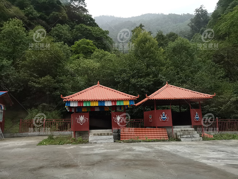 有沒有人斜坡用樹脂瓦,用鋼架做好斜坡骨架,然后把樹脂瓦固定上去的,不知道效果怎么樣,樹脂瓦我這還是挺多人做的,剛做好顏色也挺好看,鮮亮,但時間久了怕會開裂,目前我們這做好的做法就是木龍骨掛琉璃瓦或者鋼結(jié)構(gòu)掛琉璃瓦。