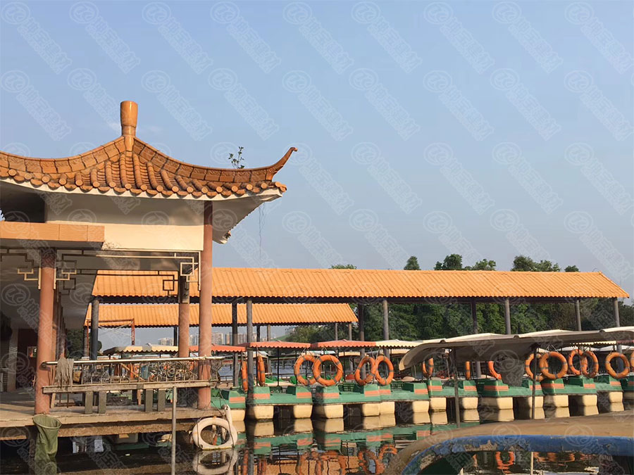 農村的房屋基本使用的是陶瓷瓦片,而這樣的陶瓷瓦青黑,容易積垢,不夠美觀;簡陽賈家農家樂在經過一番了解后,選擇了成都邦有道合成樹脂瓦。