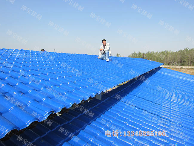 合成樹脂瓦采用高耐候性ASA工程樹脂、韌性骨架層和高強度PVC耐磨層三層共擠壓制而成;有2.5mm-3.0mm多種厚度可選,寬度有880mm和1050mm兩種,默認長度為6130mm,也可根據需要任意裁剪。