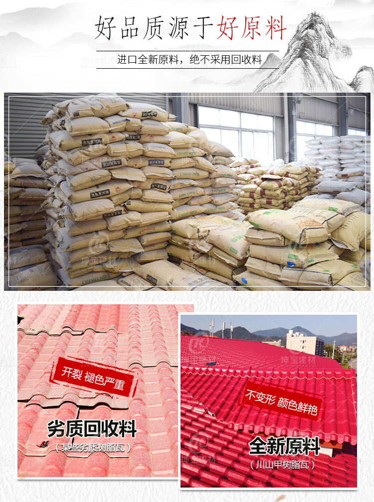 坤寶生產總監說:為了生產1片樹脂瓦,我們研究了19家工廠的產品,淘汰了81家不理想的原料商。選擇我們坤寶樹脂瓦產品