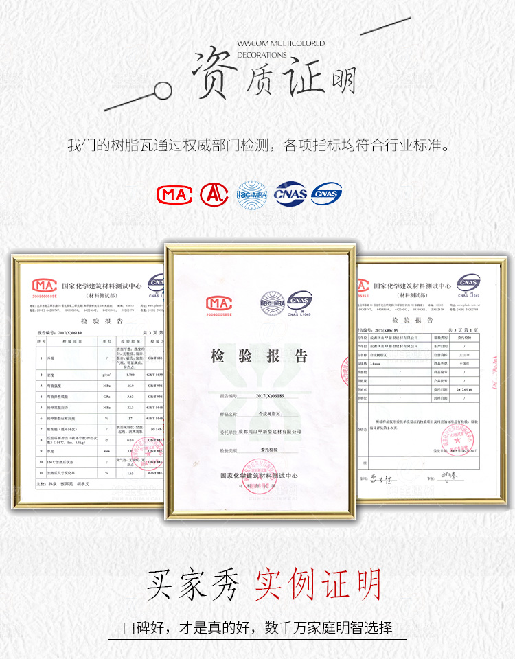 2.樹脂瓦致密、強度高,不易被冰雹打爛,更不會碎裂砸傷人或物品。